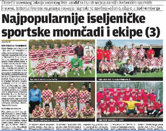 Croatia Versmold 26.02.2010 u Vecernjem-Listu , stoji u finalu ,,Naj popularnijih Hrvatskih Klubova,, ! Mi se ujedno zahvaljujemo Vecernjem-Listu,citateljima i redateljima ,,Jure Maric , Zvonko Bosnic i Ivica Orlovic, ,,klikni na sliku i procitaj prilog,, !